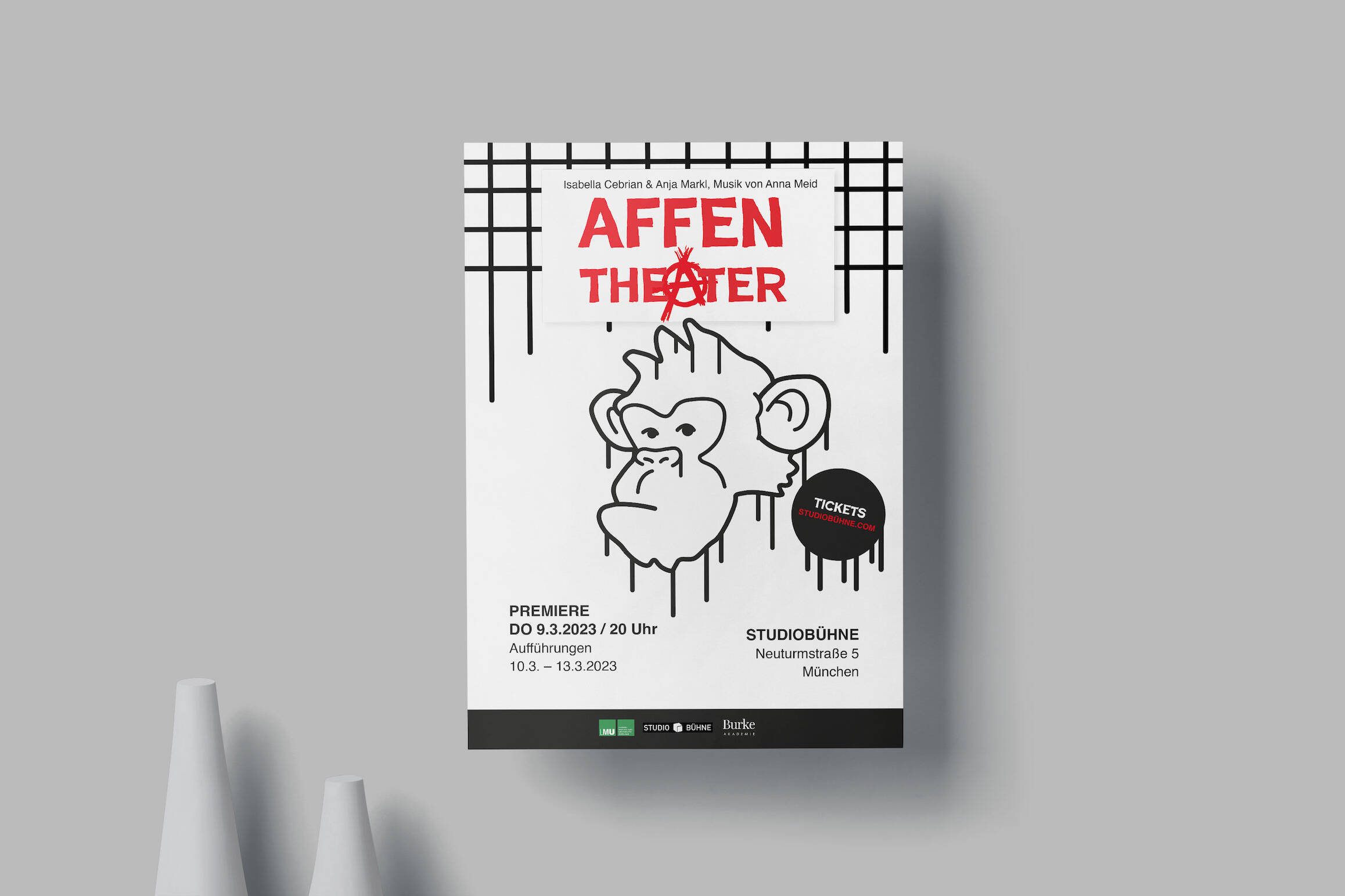 Bereits im ersten Semester an der Burke Akademie konnte ich einen Wettbewerb für das Affentheater gewinnen. Mein Plakat-Design übertrug die Energie des Stückes, das auf auffällige und laute Weise zeigt, wie „affig“ wir uns in der Welt verhalten. Die Studierenden waren von meinem Design überzeugt, und es gelang mir, die Botschaft und den Geist des Stückes visuell einzufangen.