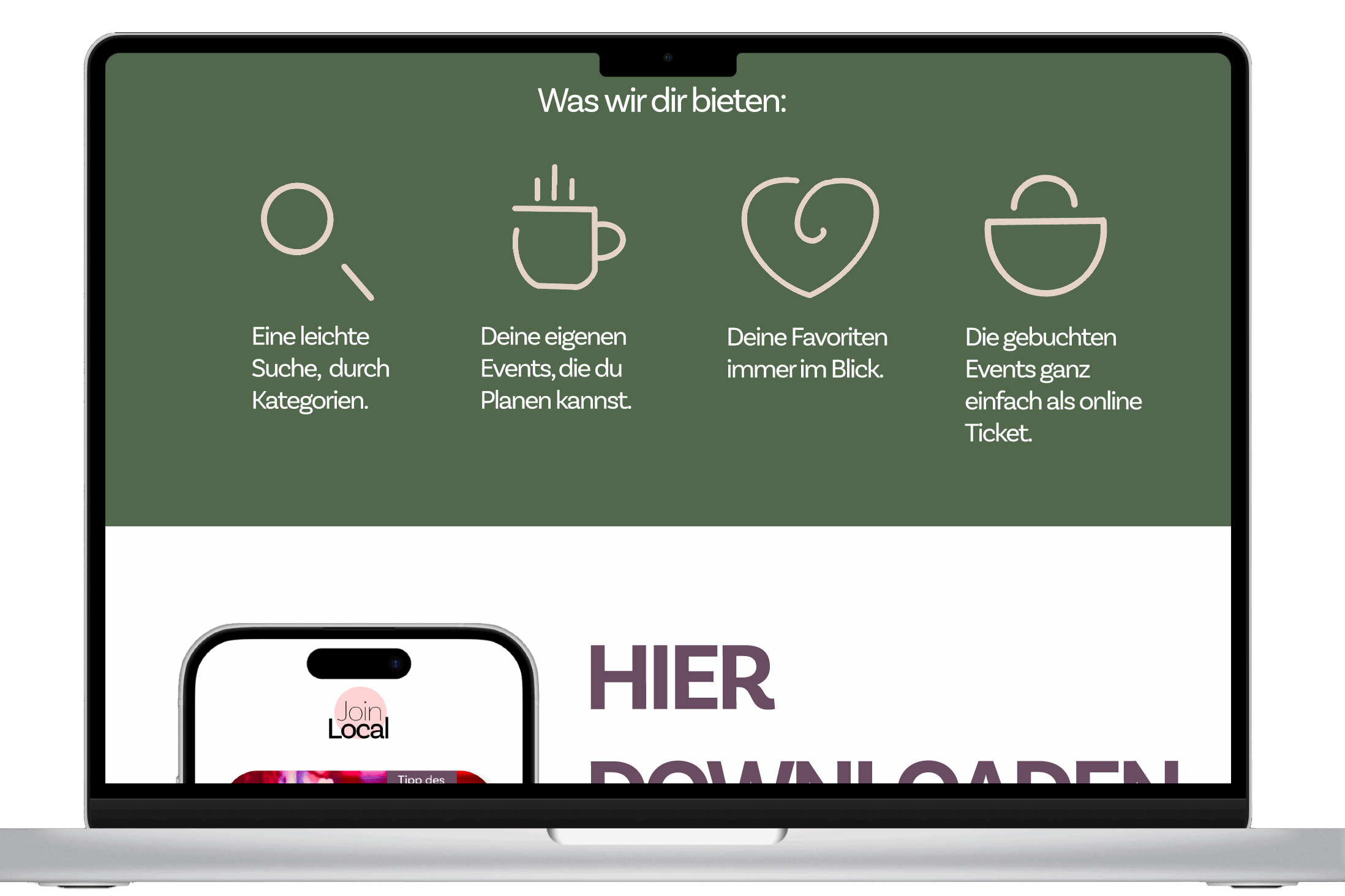 Die Join Local App zeigt dir Veranstaltungen in deiner Umgebung an und ermöglicht es dir, diese zu entdecken, zu merken und direkt zu buchen.